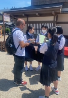 太秦映画村では、外国人観光客の方に質問をしたり、舞台を見学したりしました。