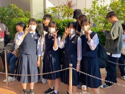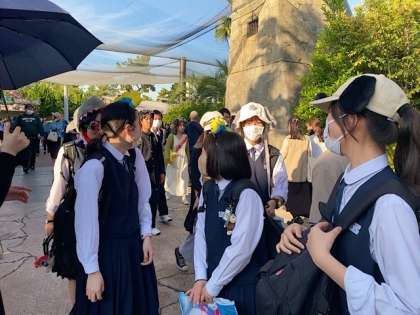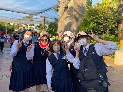 アトラクションに並んだり、カチューシャやサングラスをして楽しんでいます!