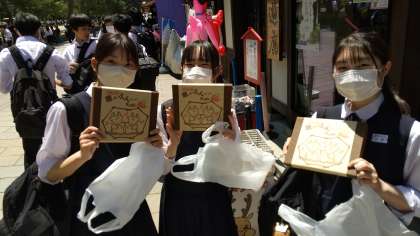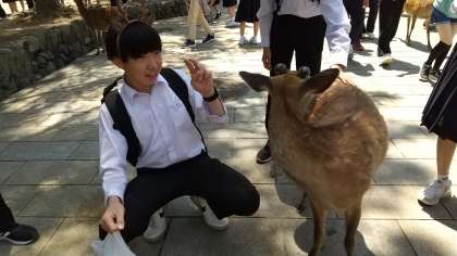 奈良公園で鹿にモテています。 お土産も購入しています!