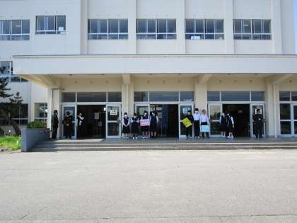 快晴です。朝ボラ、校旗掲揚、KKS運動、自転車の鍵かけチェック、朝の放送。今朝も元気に活動しています。