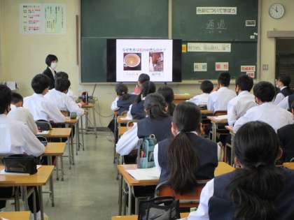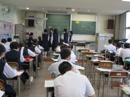 1年生 授業の様子 公開日 2023/05/19 更新日 2023/05/19 1年生 上:1年1組 音楽 校歌のテストです。みんな、しっかり覚えました。 中:1年2組 美術 色彩について学んでいます。カフェオレ色は新しくできた色です。 下:1年3組 英語 日本語で言った内容を、しっかり英文に変えています。