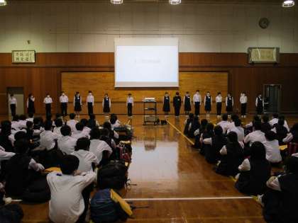 (上:学年生徒会による結団式)