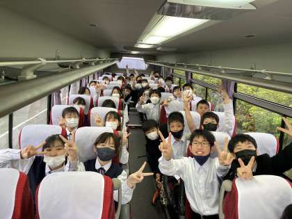 5月23日(火) 8:35 1年2組 バス内の様子です! 元気に安全に楽しく「行ってきます!」