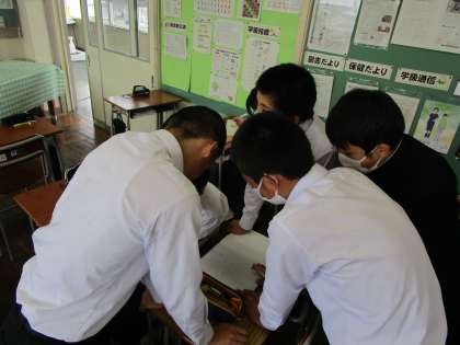 2種類の箱、それぞれの重さを予想して、2つの条件(実測値)から正解を確認しました。答えを導き出す方法が見つかったとき、説明が理解できたときには歓声があがりました。連立方程式の学習の始まりです。