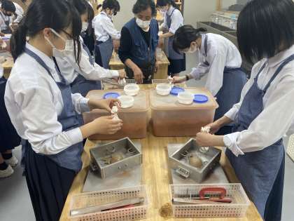 2組は、鋳物造り体験をしています。