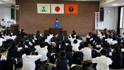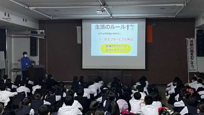 1年宿泊学習 その39(入所式) 公開日 2023/05/23 更新日 2023/05/23 1年生 全クラス砺波青少年自然の家に到着し、入所式を行いました。 入所式の後、所の方から施設のの使い方の説明を受けています。