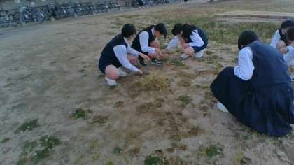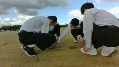 今朝の2年1組の「朝ボラ」はグラウンドの除草です!