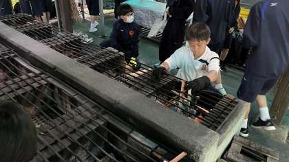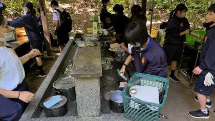 野外炊さんが始まりました。 どんなカレーライスが出来上がるのか気になりますね。 乞うご期待!