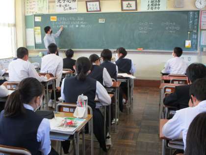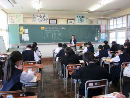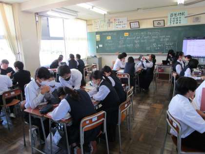 上:2年1組 理科 中:2年2組 技術・家庭科(家庭分野) 下:2年3組 英語