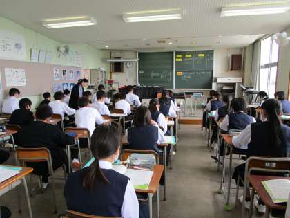 宿泊学習の翌日もがんばる1年生です。 上:1年1組 音楽 中:1年2組 美術 下:1年3組 数学