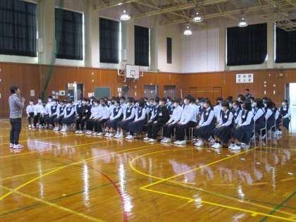 次に、団長の教頭先生が「みんながいろんな場面で積極的に活動したことが『すてきな学年』につながったのではないか。自分がこうしたらみんなのためになる、自分のためになるということを、さらにレベルアップして実行し、興南中学校の原動力になってほしい。」と話されました。