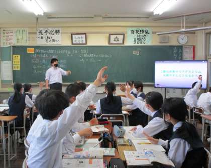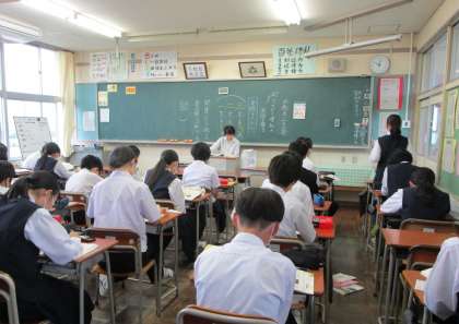 2年生 授業の様子 公開日 2023/06/02 更新日 2023/06/02 2年生 上:2年1組 理科 マグネシウムを二酸化炭素の中に入れると、どうなるでしょう? 中:2年2組 英語 「苦情を言う」「謝る」表現の学習、早く発音できるように工夫しましょう。 下:2年3組 国語 音読テストです。緊張感が漂います。