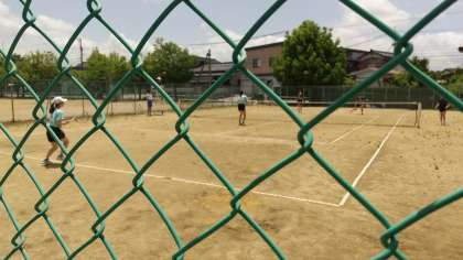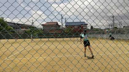 ソフトテニス部は、山室中学校さんと練習試合です。天候に恵まれ、のびのびとプレーできています。