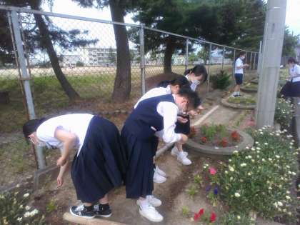美化実践部の活動・その2 公開日 2023/06/07 更新日 2023/06/07 今日の興南中 6月6日(火) 放課後 美化実践部員女子はフラワーロードの花の苗の追肥を行いました。 (写真 上:肥料 中・下:追肥の様子)