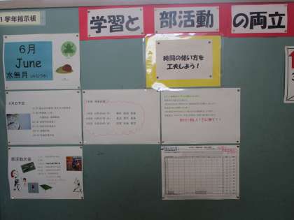 1学年掲示板 公開日 2023/06/08 更新日 2023/06/08 1年生 1学年の掲示板は「学習と部活動の両立」の特集になりました。 今月は、初めての総合選手権大会と期末評価があります。さぁ、本気で取り組む時がきました!