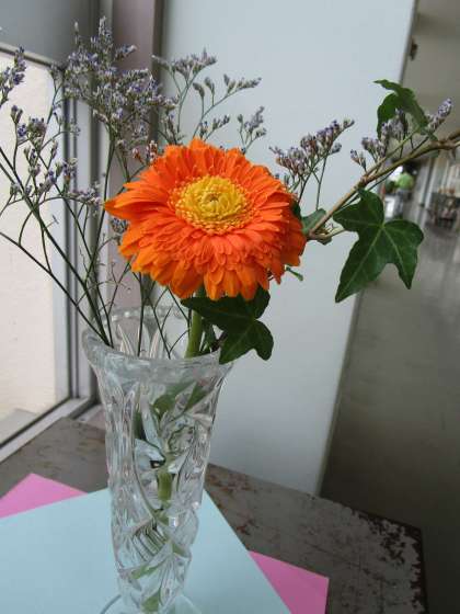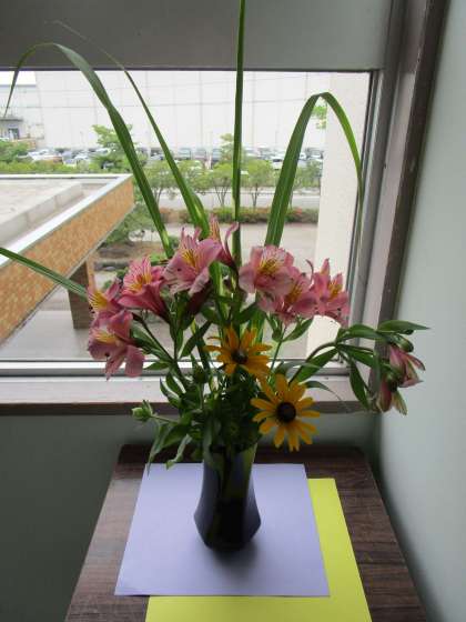 校舎の中の花です。 美化実践部会が育てている欄、花が咲きました。 花瓶の花も美しく、心が和みます。