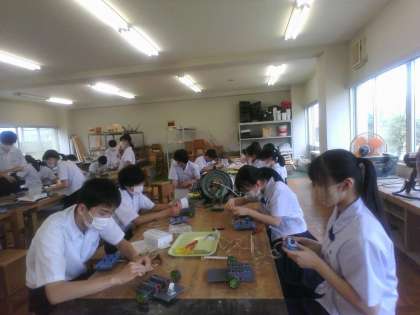 2年生・2限の授業・その2 公開日 2023/06/12 更新日 2023/06/12 2年生 6月12日(月) 2限 2年2組、技術・家庭科(技術分野)の授業です。 ロボットの制作をしています。 作業工程をクロムブックで撮影して記録しています。