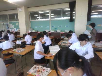 2年生・2限の授業・その3 公開日 2023/06/12 更新日 2023/06/12 2年生 6月12日(月) 2限 2年3組は美術室で授業を行っています。 制作活動を行う前に基本コンセプトをしっかり立てることが大切です!