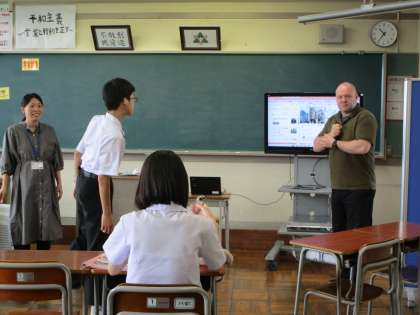 英語の授業の様子です。 左:そよご級1組 右:そよご級2組
