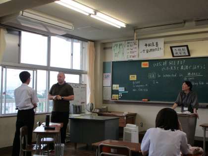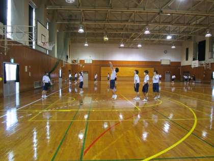 校内研修 互見授業週間 公開日 2023/06/12 更新日 2023/06/12 今日の興南中 今日は、保健体育と英語の授業が公開されました。 上・中:1年3組 保健体育 「基本のパスを練習しよう」 班で協力してアンダーとオーバーハンドパスでバスケットゴールをねらいました。山なりの高いパスにはオーバーハンドパス。 下:そよご級2組 英語 「自由時間にすることを英語で聞いたり伝えたりしよう」 ALTの先生と、積極的に英語で会話をしました。