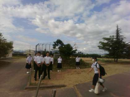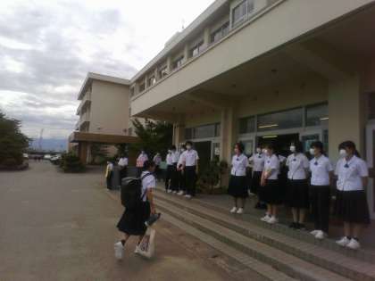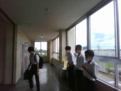 2年生・朝ボラ・その2 公開日 2023/06/13 更新日 2023/06/13 2年生 6月13日(火) 8:00 生徒玄関前、駐輪場前、西階段(3階)に分かれて登校してきた生徒に声掛けを行いました!
