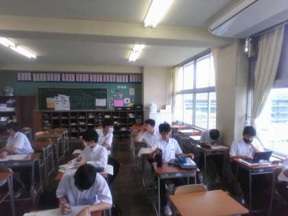 2年生 プリント学習 公開日 2023/06/16 更新日 2023/06/16 2年生 6月16日(金) 8:20 今日は市総合選手権大会ですが、運動部に所属していない生徒は学校に登校して学習しています。