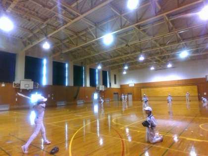 6月16日(金) 8:20 体育館では、午後から試合に備えて野球部が練習を行っています。