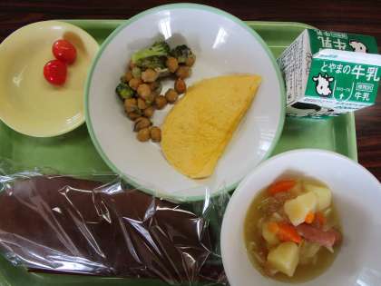 今日の給食 公開日 2023/06/19 更新日 2023/06/19 今日の興南中 6月19日(月)の献立は、 ココアコッペパン、牛乳、チーズオムレツ、きのこと豆のアヒージョ、ポトフ、さくらんぼ です。 さくらんぼの季節です。給食のさくらんぼは特別感があります。 6月 献立表はこちらです。