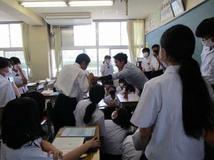 1年生授業の様子 公開日 2023/06/20 更新日 2023/06/20 1年生 6限の授業の様子です。 交流し、体験し、集中して説明を聞き、いい表情で学んでいます。 上:1年1組 英語 中:1年2組 理科 下:1年3組 英語
