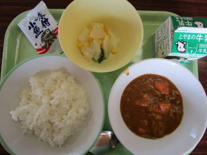 今日の給食 公開日 2023/06/21 更新日 2023/06/21 今日の興南中 6月21日(水)の献立は、 ごはん、牛乳、カレーライス、大根サラダ、味付け小魚 です。 じゃがいもゴロゴロ、お肉たっぷりのカレーライスはみんな大好きなメニューです。 6月 献立表はこちらです。