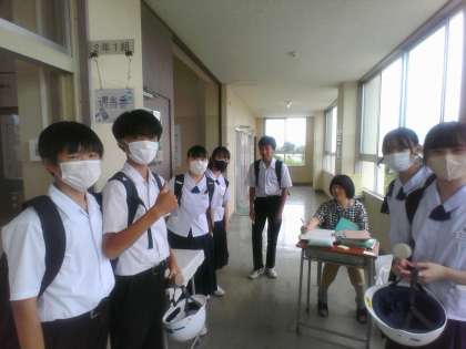 2年生・14歳の挑戦に向けて・その1 公開日 2023/06/21 更新日 2023/06/21 2年生 6月21日(水) 5限 2年生の「社会に学ぶ『14歳の挑戦』」のための「事業所事前訪問」も本日が最終日。 出発前の様子。 (にながわ保育園)