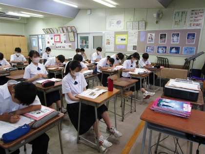 3限の授業の様子です。 期末評価に向けてワーク等の学習を進めている授業もあります。