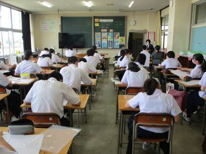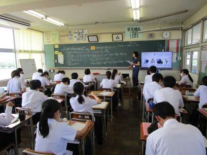 4限、美術ではメッセージを伝えるポスターをかいています。英語と数学の授業では期末評価の内容を確認しました。