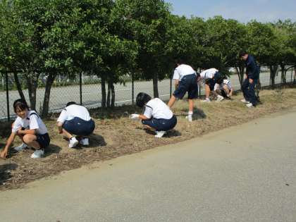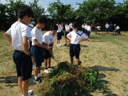 校風高揚大会 公開日 2023/06/29 更新日 2023/06/29 今日の興南中 今日は、校風高揚大会でした。 ボランティア実践部が企画し、1年生から3年生までが、縦割り班で活動しました。 暑い中でしたが、他学年との交流を楽しみながら除草をがんばりました。
