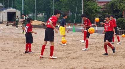 あいにくの雨ですが、皆、試合に向けてアップ中。対戦相手は三成中です。頑張ります❗