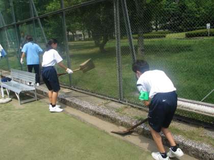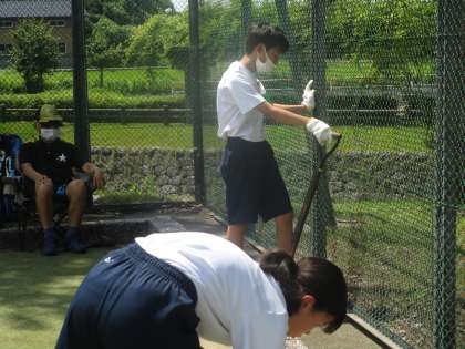 本日は1年に1回のテニスコートの排水溝清掃の補助の仕事をしました。