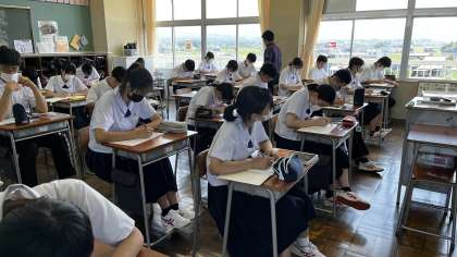 3年生 授業の様子 公開日 2023/07/04 更新日 2023/07/04 3年生 3年生教室横の廊下に、入試問題集のサンプルが置かれる時期になりました。 授業中の様子にも真剣味が増してきましたね。