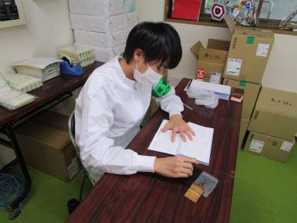 2年生 社会に学ぶ「14歳の挑戦」 その15 公開日 2023/07/04 更新日 2023/07/04 14歳の挑戦 7月4日(火) 13:00 アルペン乳業 会社の名前の入ったハンコを押して書類の作成を手伝っています。