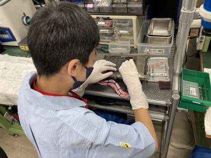 2年生 社会に学ぶ「14歳の挑戦」 その17 公開日 2023/07/04 更新日 2023/07/04 14歳の挑戦 7月4日(火) 14:00 村田製作所 写真 上:機械のシステムを学ぶための取組に試行錯誤しています。 中・下:精密部品の清掃と再組み立てをする体験をさせていただいています。