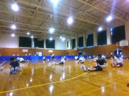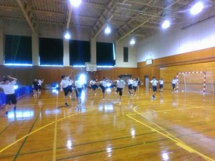 7月4日(土) 放課後 本日の体育館使用はハンドボール部と卓球部です。 ハンドボール部の準備運動の様子。