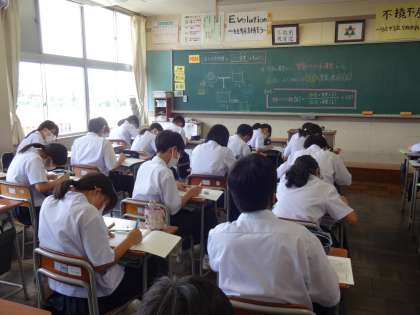 集中して学習しています! (写真上:1年1組 国語) (写真中:1年2組 理科) (写真下:1年3組 英語)