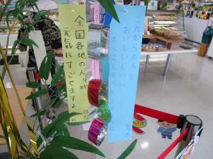 2年生 社会に学ぶ「14歳の挑戦」 その46 公開日 2023/07/07 更新日 2023/07/07 14歳の挑戦 7月7日(金) 10:40 リブラン・富山空港通店 本日は「七夕」。 星に願いを・・