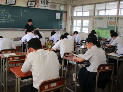 4限、3年生も最後まで集中しています。 上:3年1組 社会 下:3年3組 理科