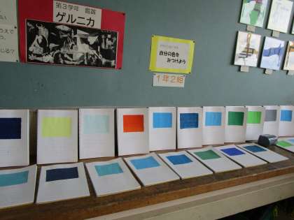 美術室の後ろには 公開日 2023/07/13 更新日 2023/07/13 今日の興南中 美術室には、いつも素敵な作品が並んでいます。 今日は、1年生の「自分の色を見つけよう」でした。それぞれの色に素敵な思いが詰まっています。