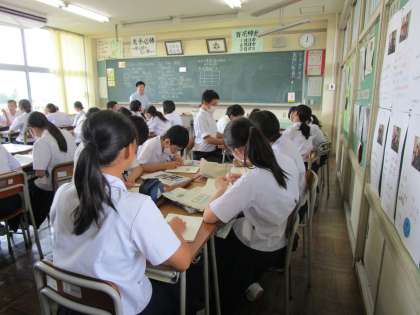 4限、2年生はじっくり課題に取り組んでいます。 上:2年1組 理科 中:2年2組 数学 下:2年3組 社会
