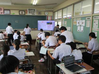 3年生 授業の様子 公開日 2023/07/14 更新日 2023/07/14 3年生 4限、3年生も助け合ったり、黒板を見たりして問題を解いています。理科の授業では、集中してまとめの問題に取り組んでいました。 上:3年1組 理科 中:3年2組 英語 下:3年3組 数学