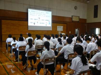 興南中生が自分たちのことをしっかり見つめ、よく考え、話し合って、全校で考え直す機会となる学校保健委員会でした。保健実践部のみなさん、ありがとうございました。