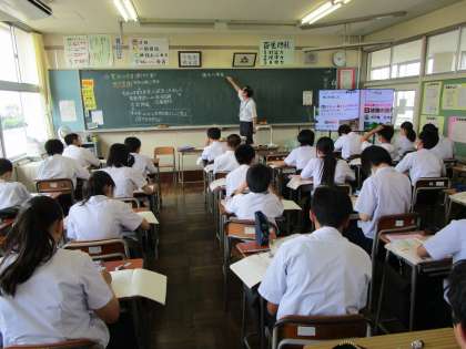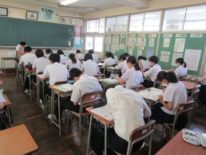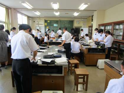 上:2年1組 技術・家庭科(家庭分野) 中:2年2組 理科 下:2年3組 社会
