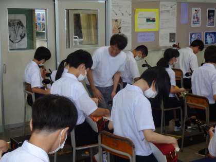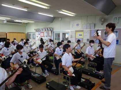 授業の様子 2年生 公開日 2023/07/20 更新日 2023/07/20 2年生 本日、2年生は特別非常勤講師の先生に来ていただいて「三味線講習」を行いました。 1年生のときからの積み重ねで、手さばきがかなりよくなってきました。 10月に行われる全国公開授業に向けて、まだまだ練習は続きます。 (写真上:2年1組) (写真中:2年2組) (写真下:2年3組)