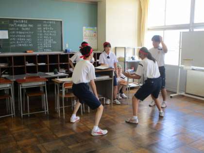 夏休み1日目 体育大会に向けて団役員の活動も熱が入ってきました。熱中症に気をつけて活動しています。